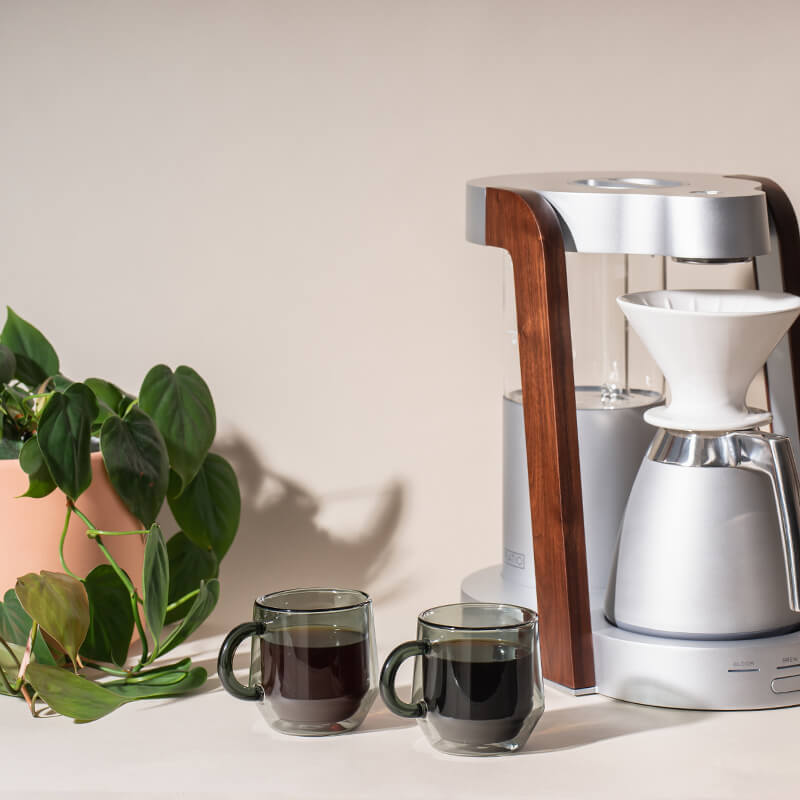 The Eight Series 2 brings thoughtful upgrades to our original design. A new stainless steel and glass hot water path, dual recipe brew programs, and a durable matte surface offer improved performance without changing the silhouette. With solid wood, handblown glass, and one-button simplicity, it’s still everything you loved—just refined where it matters most.