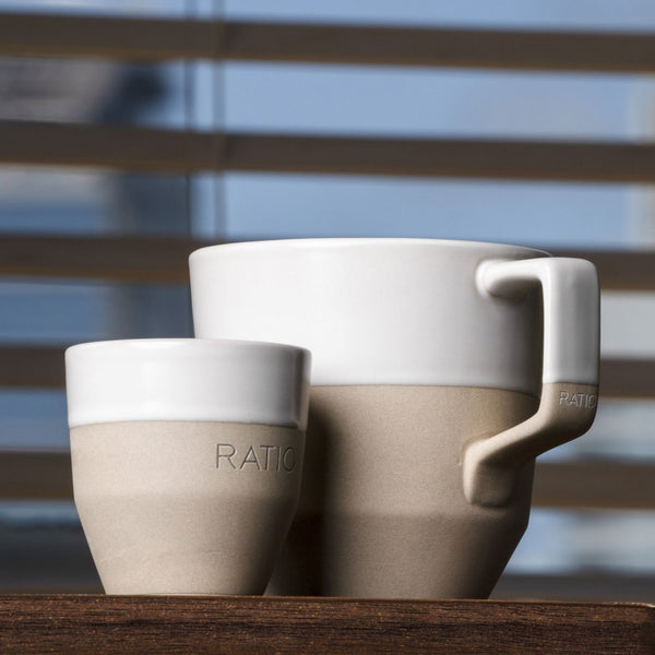 These Ratio Pico cups are our newest ceramics offering in collaboration with notNeutral. The collection is named after Pico Boulevard, the iconic thoroughfare that runs from the Pacific Ocean to downtown Los Angeles uniting many of the city’s most culturally diverse neighborhoods and vibrant culinary destinations. From the glazed lip for the perfect sip and the tulip shape to keep beverage temperatures stable, every detail in the collection was meticulously designed to make Pico a treasured part of your coffee or tea ritual. These Pico Coffee Cups feature "Ratio" etched delicately into the handle just below the glaze.
