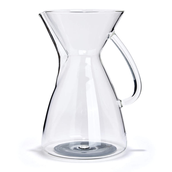 Our glass carafe and Kone filter are the perfect combination to enhance your Ratio Eight routine. The Kone's precision-etched holes are the ideal match for the larger batches that are possible on the Ratio Eight, and the glass carafe is both functional and beautiful. The high quality stainless filter of the Kone lets a bit more of the coffee oils through than a paper filter, producing a rich cup of coffee that is more like a french press but without any sediment on the bottom.