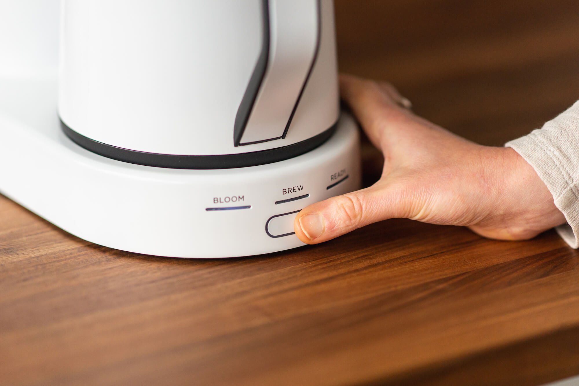 The Ratio Six mimics a skilled barista pourover process, precisely metering water flow through both the bloom and brew phases. All of the taste. None of the work.